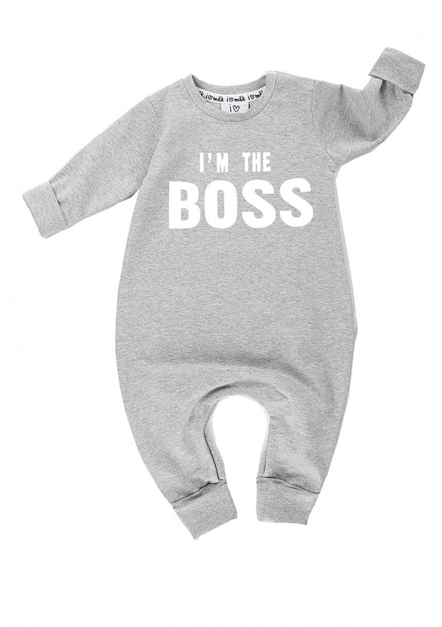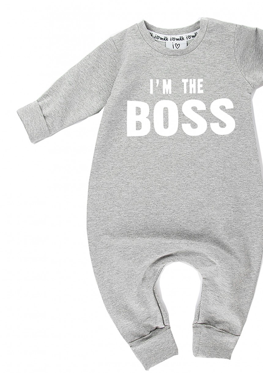 Rampers dziecięcy z długim rękawem "I'm the boss" Szary Melanż