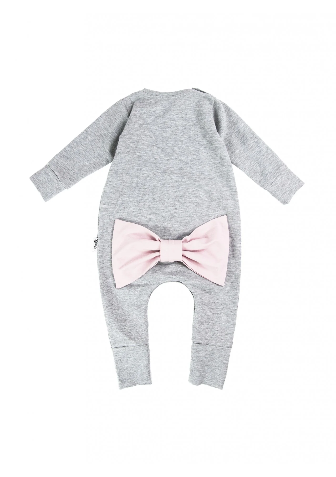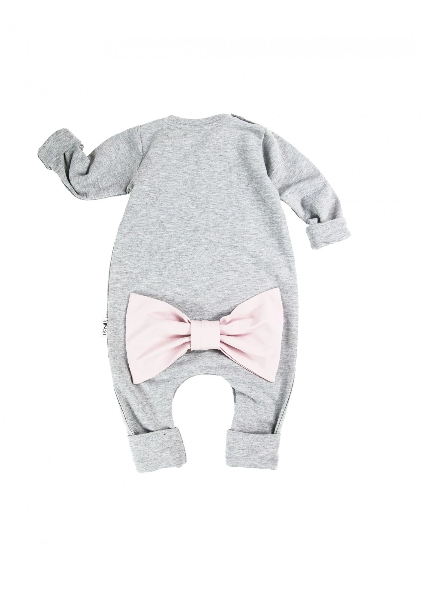 Rampers dziecięcy z długim rękawem i kokardą na tyle Szary Melanż