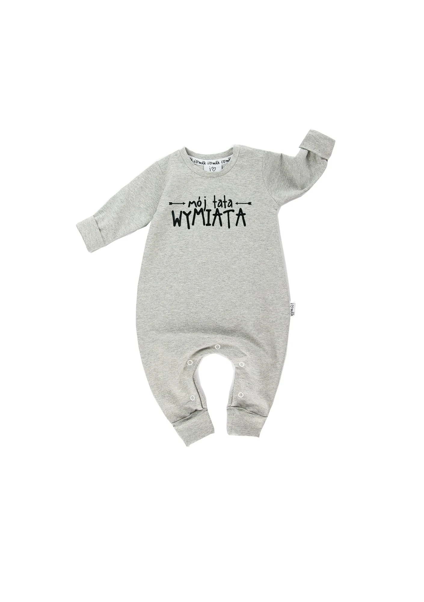 Rampers dziecięcy z długim rękawem "mój tata wymiata" Szary Melanż