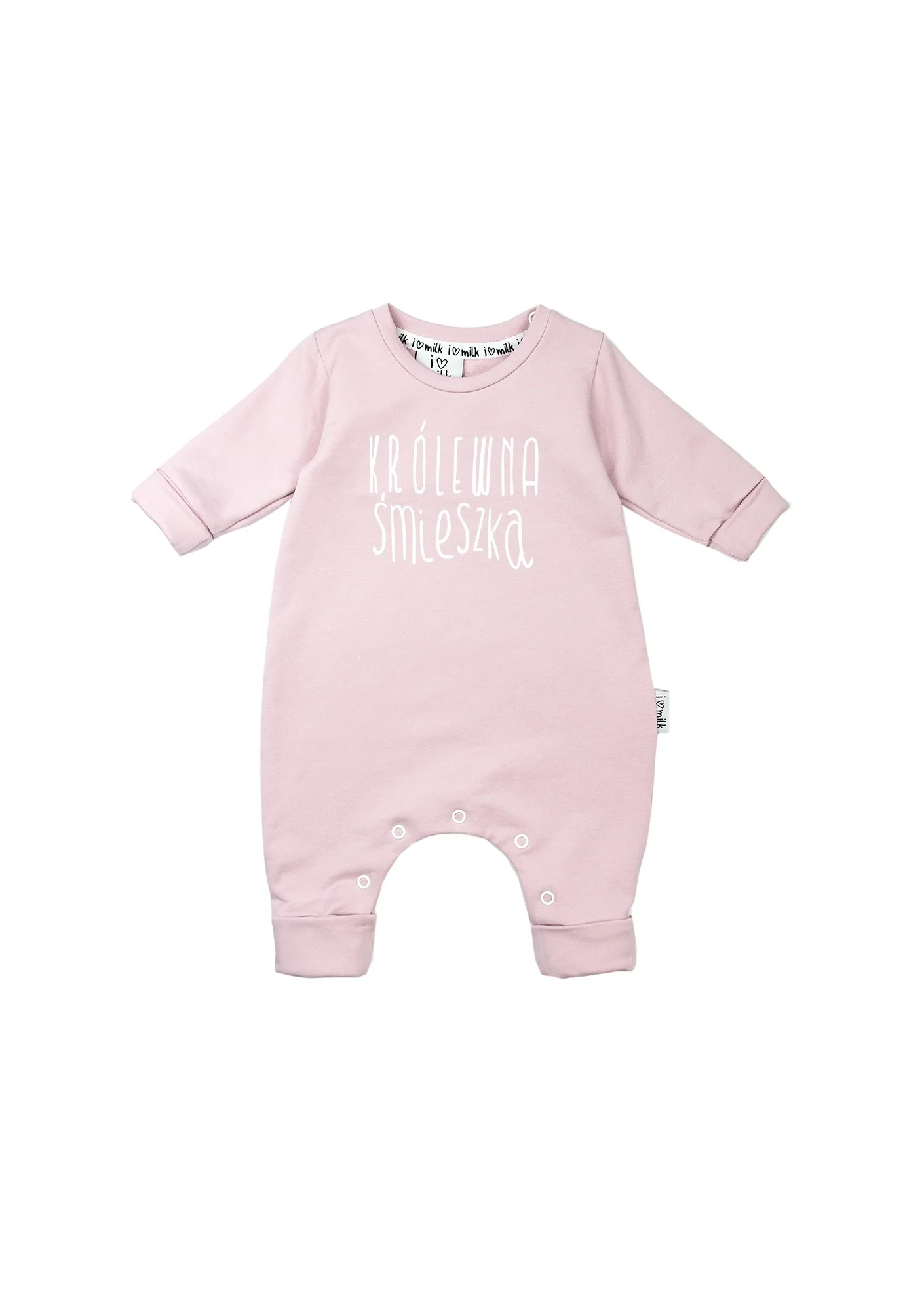 Rampers dziecięcy z długim rękawem "królewna śmieszka" Pudrowy Róż