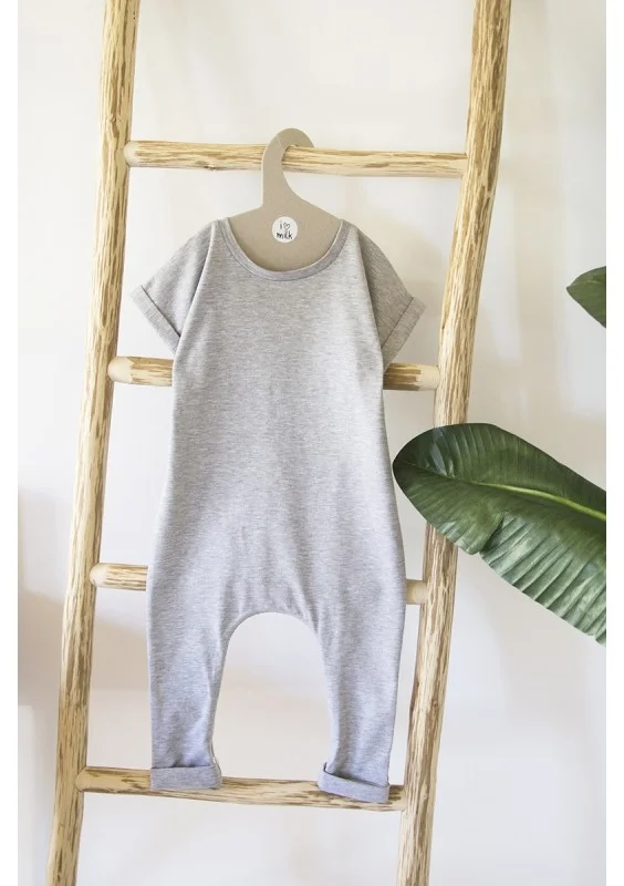 Rampers dziecięcy z krótkim rękawem basic Szary Melanż