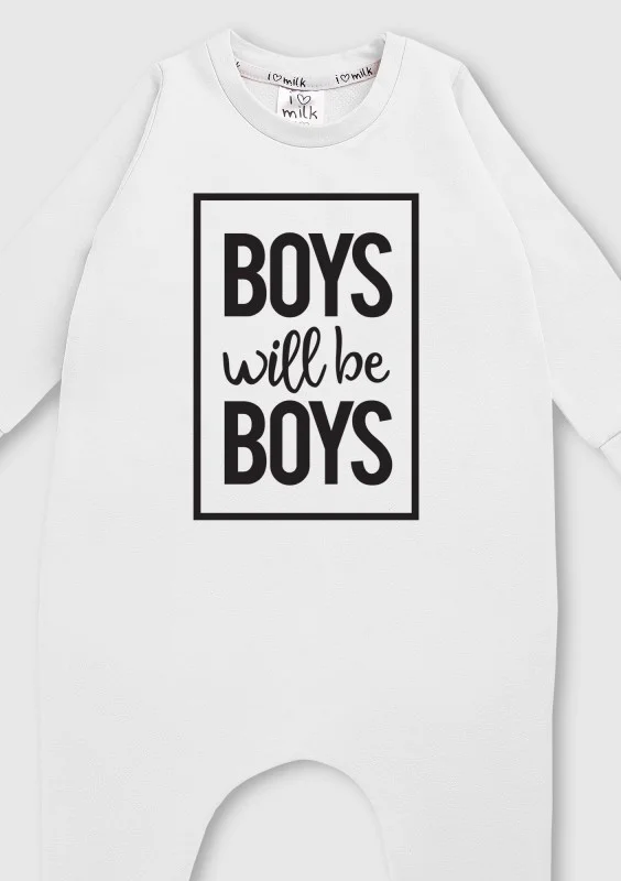Rampers dziecięcy z długim rękawe "boys will.." Biały