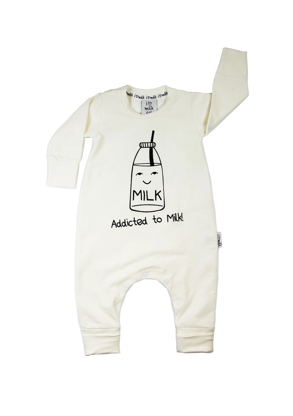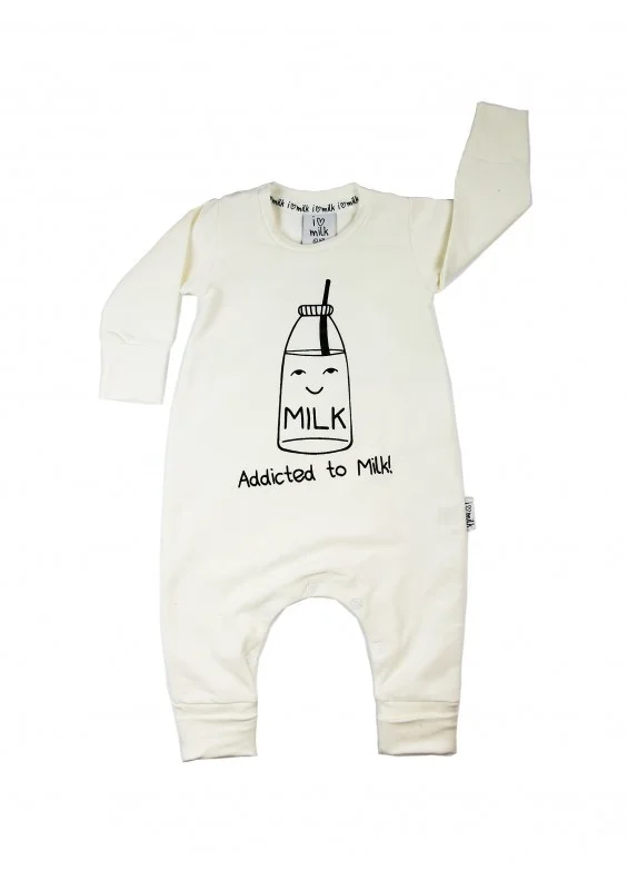 Rampers dziecięcy z długim rękawem "addicted to milk" Biały