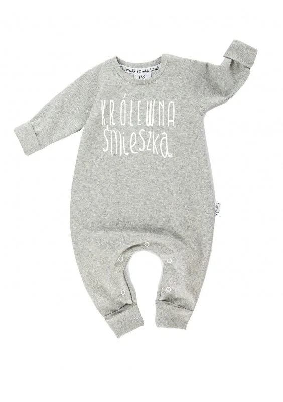 Rampers dziecięcy z długim rękawem "królewna śmieszka" Szary Melanż