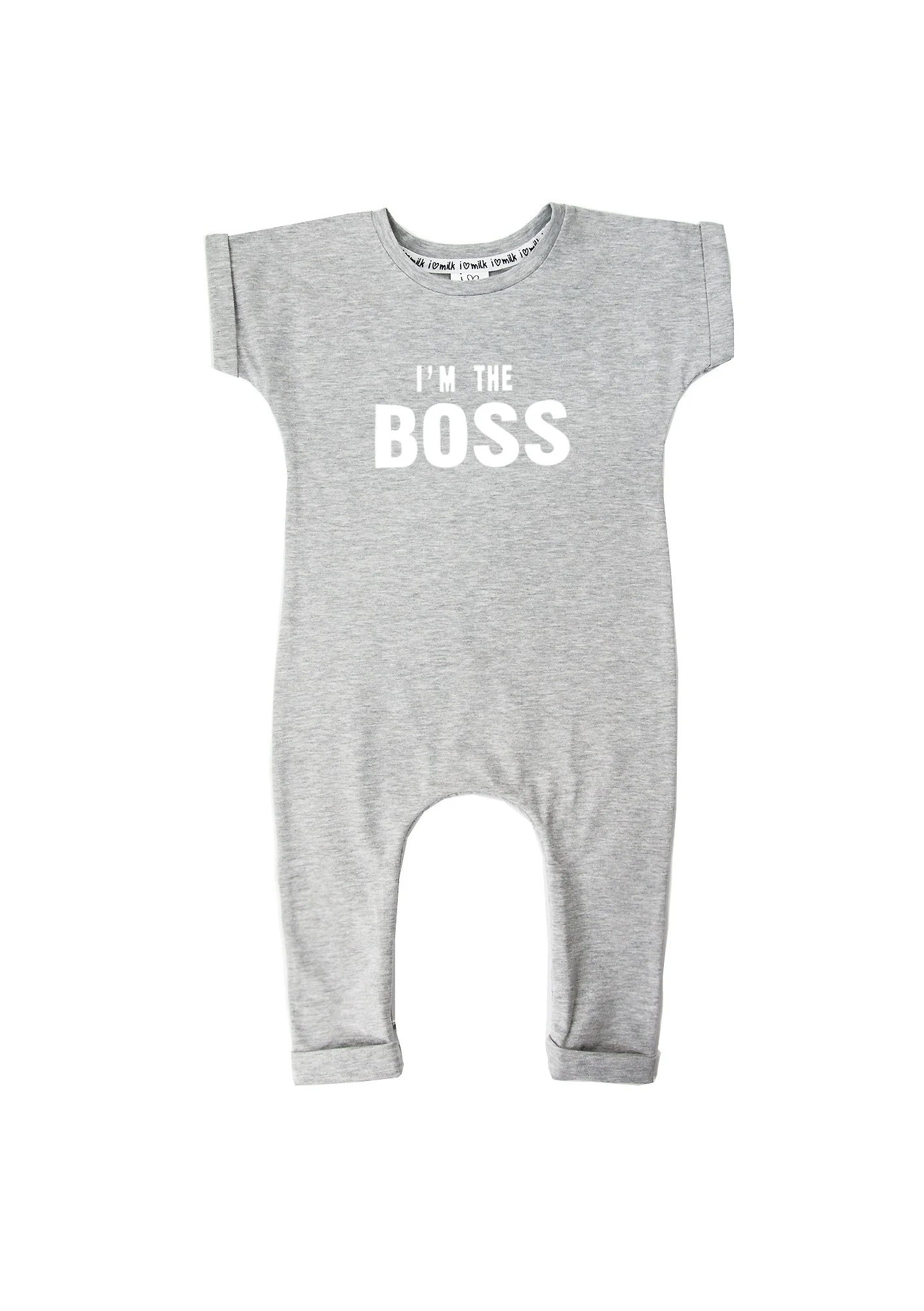 Rampers dziecięcy z krótkim rękawem "I'm the boss" Szary Melanż