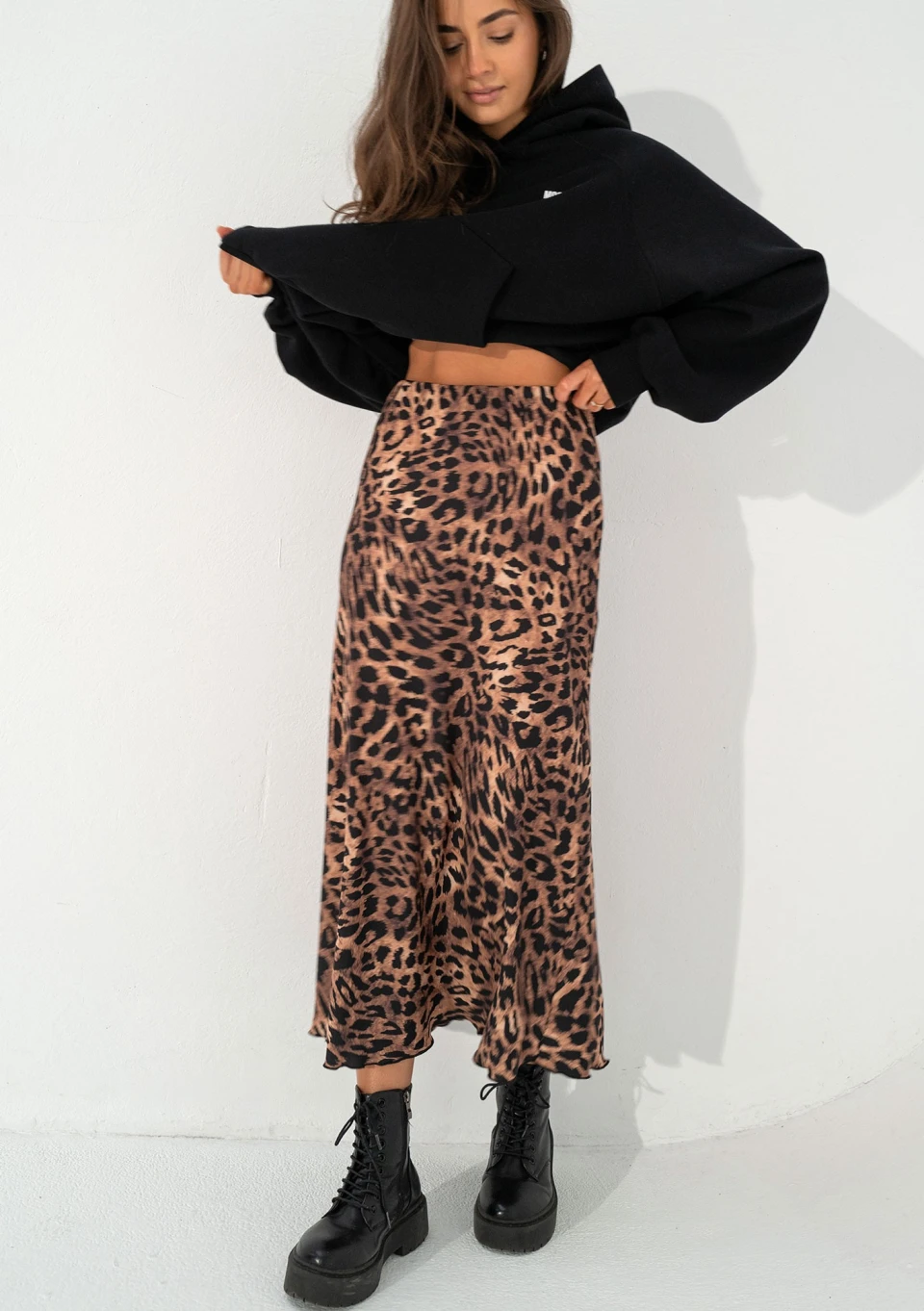 Odkryj wyjątkowy styl panterki. Ta wygodna spódnica midi zdobiona wzorem cętek doda każdej stylizacji wyjątkowego charakteru!