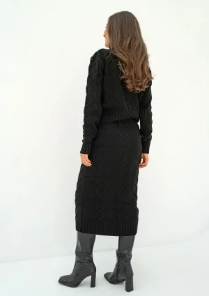 Roxen - Spódnica midi z ozdobnym splotem Czarna
