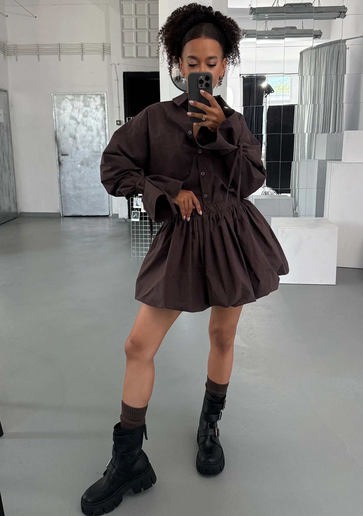 W jesiennej kolekcji proponujemy niezwykłą stylizację Floe - nowoczesną, odważną i przyciągającą uwagę modnym akcentem bombki. Spódniczkę z popeliny możesz połączyć z dedykowaną koszulą Floe, świetnym uzupełnieniem zestawu będą botki, kozaki z długą cholewką, a nawet trapery w ciężkim, militarnym stylu, jakie prezentuje modelka Jackie. Spódniczki bombki nie są w modzie nowością, ale zdecydowanie wróciły do łask w tym sezonie - dopiero podbijają trendy, więc odkrywasz ten fason na zupełnym początku! Floe to look, który doda świeżości jesiennym wizerunkom.