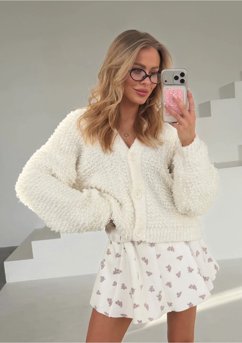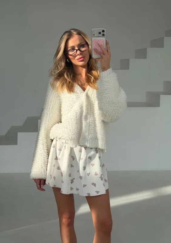 Lumie - Miękki kardigan z bukli Ecru
