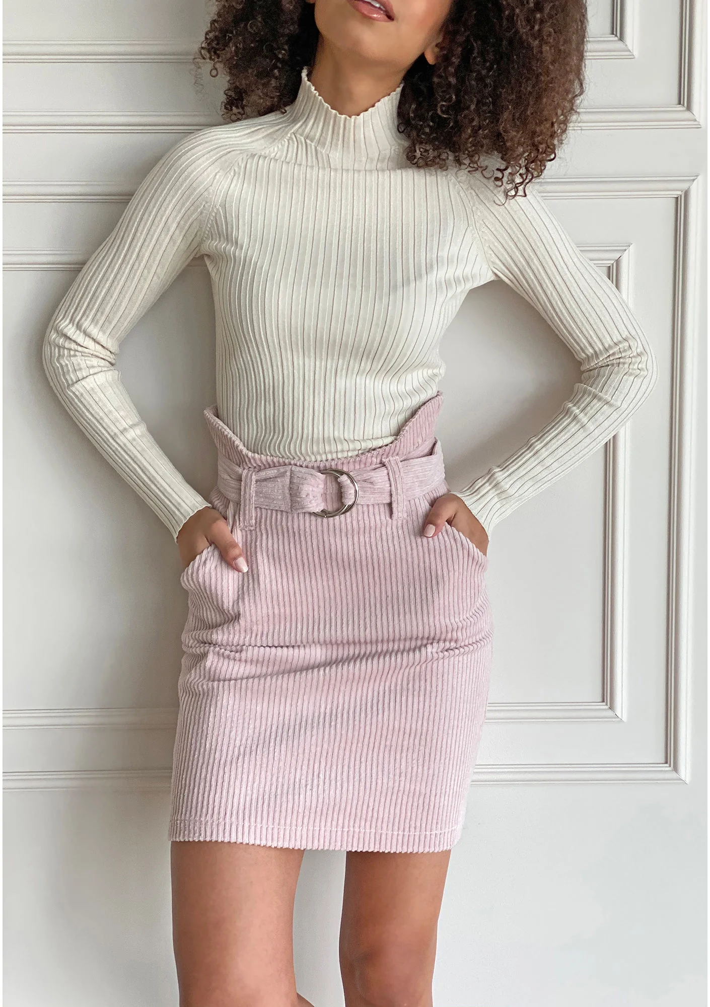 Spódniczka ze sztruksu Pudrowa F01