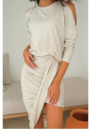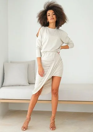 Asymetryczna spódnica z dzianiny z lnem
