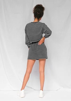 Proponowany przez nas model to zdecydowanie hit tego lata. Przede wszystkim dlatego, że jest krótki i przewiewny. Długością sięga do połowy uda i sprawdzi się w stylizacjach sportowych, jak i tych do chodzenia po mieście. W pasie posiada gumkę, która sprawia, że spódniczka jest łatwiejsza do dopasowania i przylega do ciała. Z lewej strony posiada ona niewielkie rozcięcie, które odsłania kawałek nogi. Dodatkowo w tym miejscu znajduje się także biały, drukowany napis Mosquito, który przyciąga uwagę, ale jednocześnie jest bardzo delikatny. Po obu stronach znajdują się płytkie kieszonki, które nadają jej charakteru. Interesujący jest również sam kolor. Jest to odcień czerni, ale sprawiający wrażenie spranego, dzięki czemu wpada w tonację szarości. Warto powiedzieć także kilka słów o samym wykonaniu tej spódniczki. Stworzona została z surowców najwyższej jakości. Przede wszystkim z bawełny w połączeniu z laycrą. To właśnie ta druga sprawia, że spódniczka jest także elastyczna oraz nic złego nie dzieje się z nią podczas prania. Dostępna jest ona w czterech rozmiarach, czyli XS, S, M oraz L. Polecamy zakup standardowo noszonego przez siebie numeru, ponieważ spódniczka leży dobrze na każdej figurze.