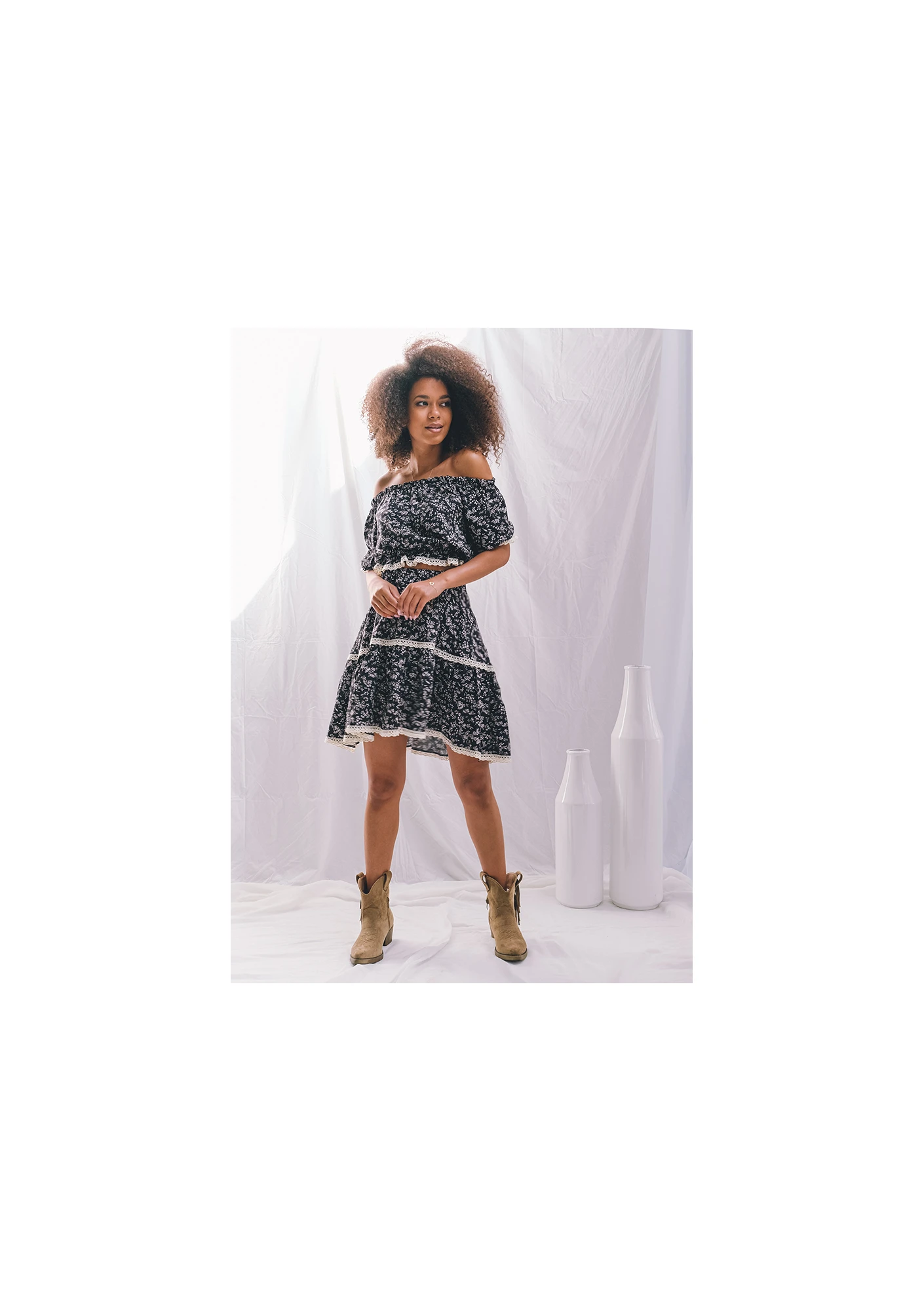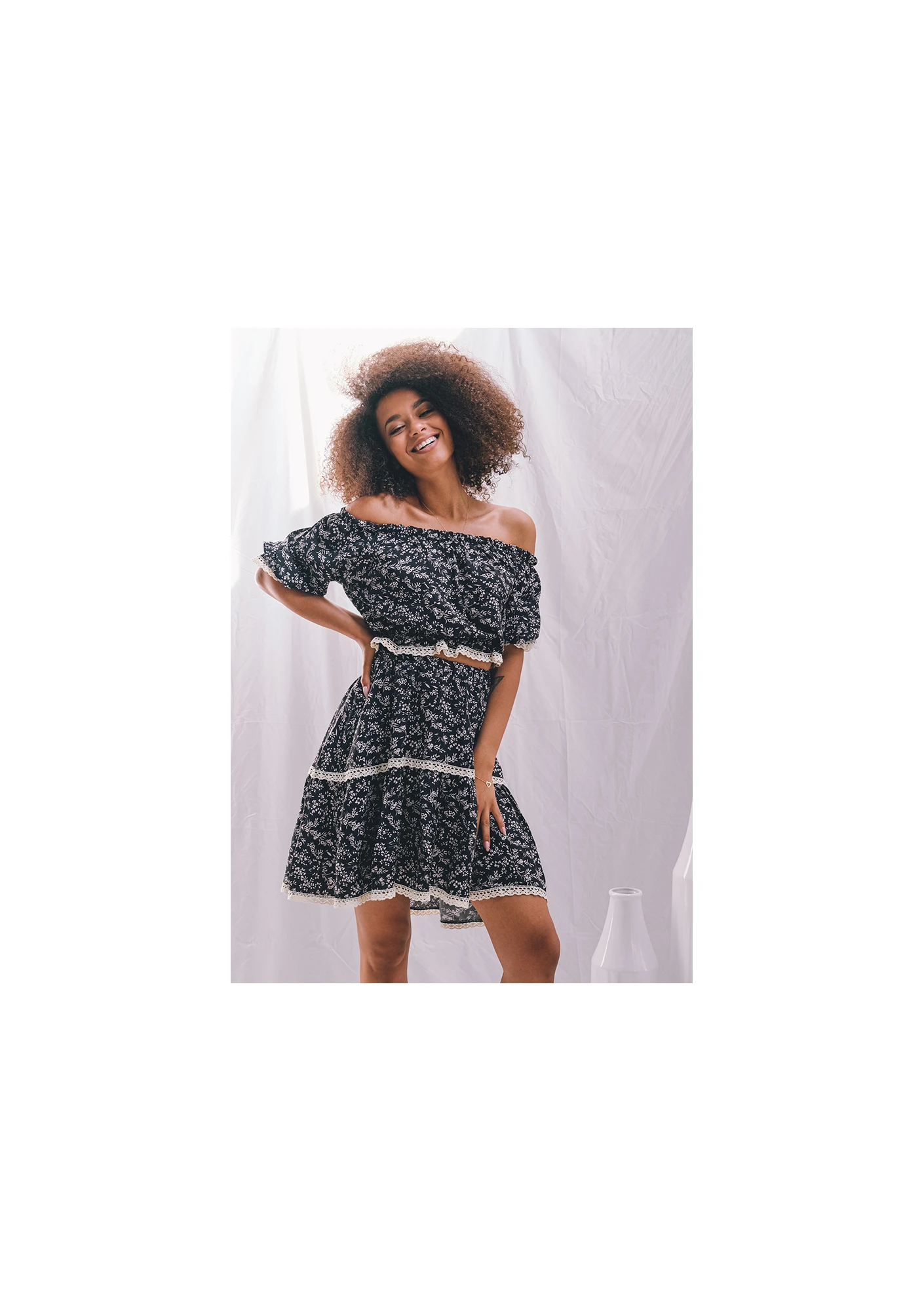 Spódnica nie wymaga zakładania wymyślnych dodatków, by stworzyć ciekawą stylizację. Wystarczy delikatna biżuteria i ulubione buty, żeby zachwycić innych swoim wyglądem! Uszyta z wiskozy damska spódnica może być noszona z tradycyjnymi topami, w tym także modelami na ramiączkach, czy pasującą do kompletu bluzką z Mosquito. Czerń odporna jest na spieranie, a wstawki z koronki dobrze znoszą wielokrotne zakładanie odzieży. Wysoki stan przytrzymywany jest w pasie na elastycznej gumie, przez co spódnica nie opada podczas chodzenia. Świetnie spisze się w cieplejsze pory roku z uwagi na oddychający materiał - włókna naturalnego pochodzenia świetnie przepuszczają powietrze, zapewniając jego naturalną wymianę między skórą a otoczeniem. Odzież szyta jest w Polsce. Spódnica zaprojektowana przez Alicję Komar.