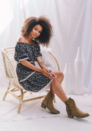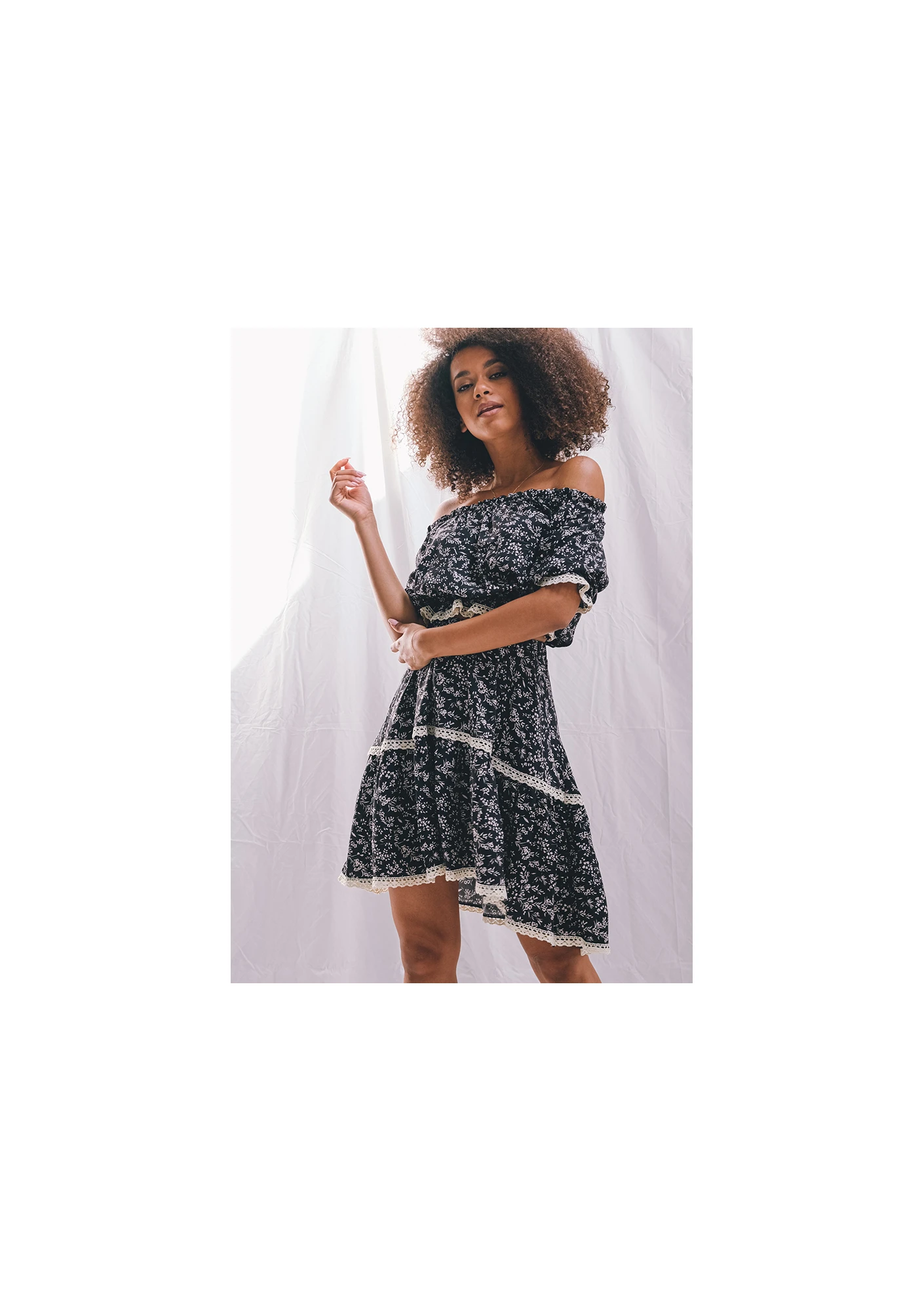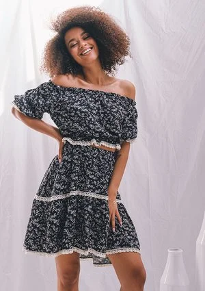Wnieś powiew świeżości do swojej szafy i zachwycaj kobiecym wyglądem! Wyjątkowa spódnica damska od Mosquito to wygoda, styl, a przede wszystkim niewymuszony seksapil! Model nie opina sylwetki, lecz luźno opada wzdłuż niej. Odpowiednie przeszycie powoduje, że spódnica układa się w zwiewne falbany. Odzież utrzymana jest w czarnym odcieniu, a dodatkowo uzupełniona o subtelne kwiatki na tkaninie i wykończenie koronkowymi wstawkami. Wszyte poziomo pasy z jasnej koronki dodają spódnicy charakteru i kobiecego wyglądu. Model od Mosquito zamówić można w rozmiarach XS-L. W każdym z nich tkanina dobrze układa się na ciele, w szczególności na pośladkach i w biodrach. Nie ma także mowy o podwijającym się materiale. W Mosquito spódnica dostępna jest także w innych kolorach.