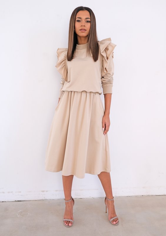 Kirry - Spódnica midi z dzianiny Beige