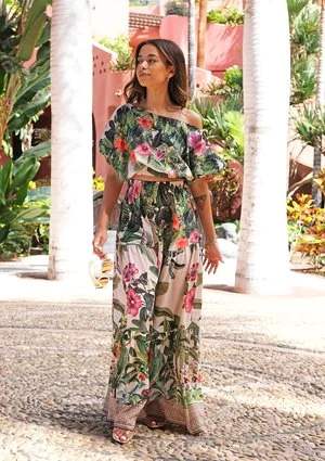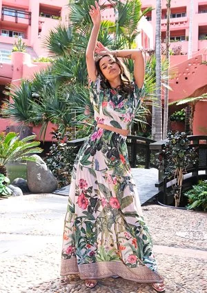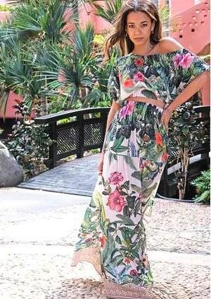 Jeśli lubisz długość maxi, a przy tym zdecydowanie wakacyjny styl postaw na wzorzyste sukienki i spódnice w kwiaty, liście lub zwierzęce printy. Prezentowana spódnica sięgająca do ziemi jest szczególnie wartym uwagi modelem: daje nie tylko tak samo spektakularny efekt, co sukienki maxi, ale dodatkowo możesz nosić ją do wielu różnych topów. Jej rajskie wzornictwo i nieprzesadzona kolorystyka naturalnej zieleni będzie świetnie współgrać z bluzkami i koszulkami w przeróżnych odcieniach i fasonach.
