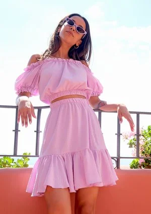 Rozkloszowana spódnica w odcieniu liliowego różu to propozycja dla Ciebie, jeśli lubisz dziewczęce i nieco romantyczne fasony. Cały jej urok i wdzięk leży w jasnym, kobiecym kolorze oraz zwiewnej formie z falbanką. Spódniczka nie posiada guzików i suwaka – utrzymuje się na wygodnej, elastycznej gumce schowanej pod estetycznym marszczeniem materiału. Tak urokliwą kreację możesz nosić latem wszędzie: do pracy, na popołudniowe spotkania ze znajomymi oraz na miłe przyjęcia czy randki z ukochaną osobą. Spódniczka zajmuje bardzo mało miejsca, a jednocześnie pasuje do wielu, krótkich topów damskich – z wielką chęcią zabierzesz ją na swój wakacyjny wyjazd!