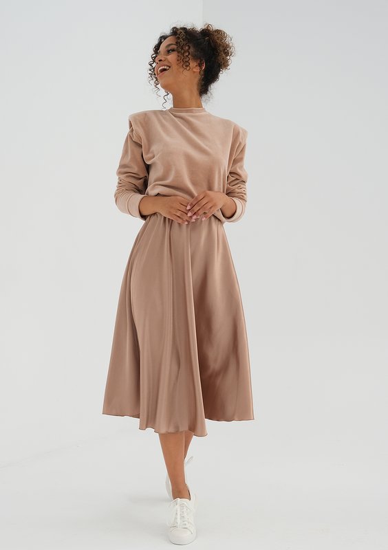 Araya - Spódnica midi z satyny Beżowa