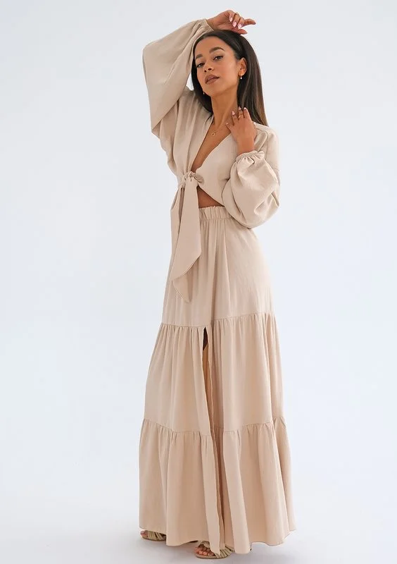 Rosy - Długa spódnica z rozcięciem Beżowa