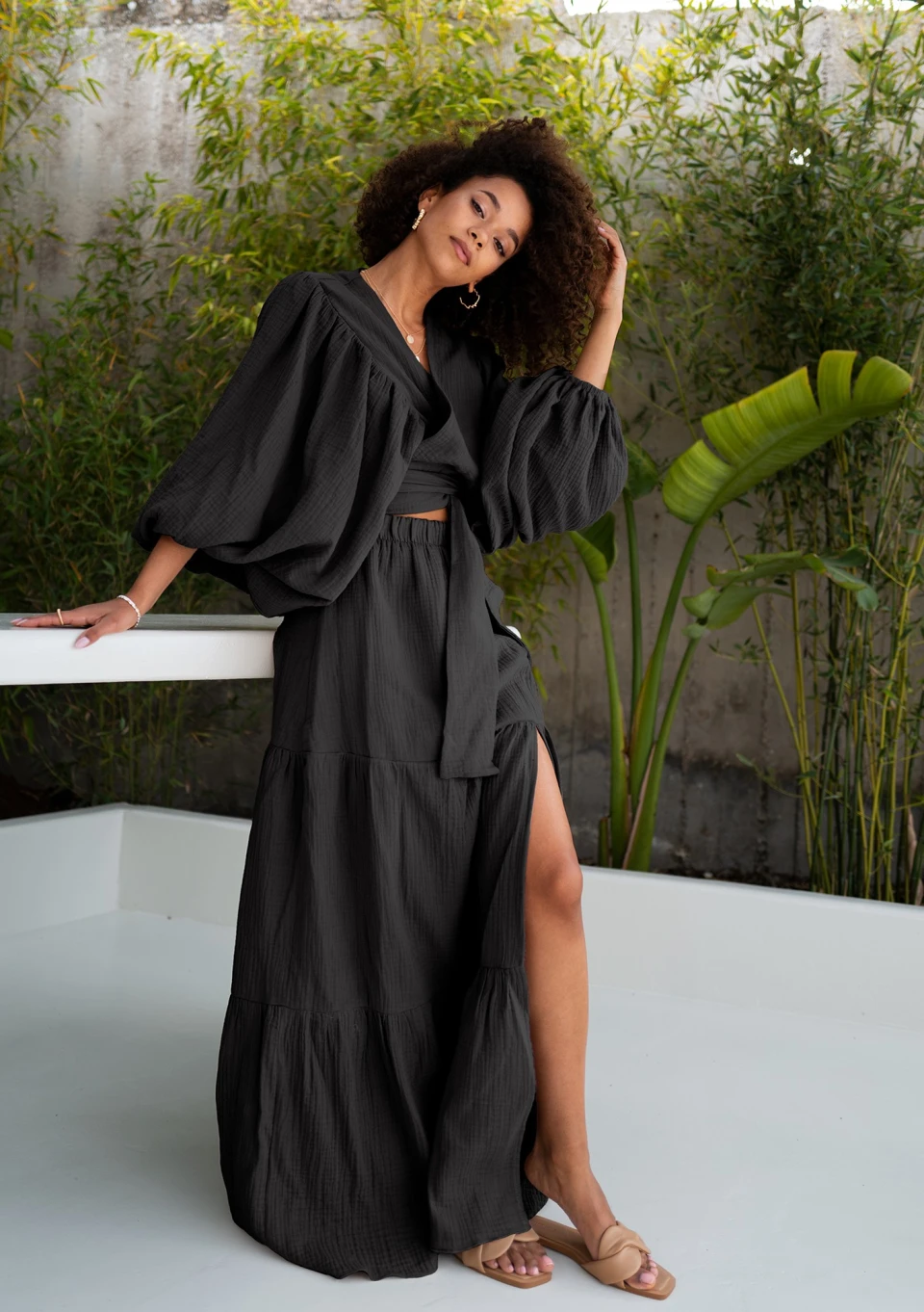 Czarna spódnica maxi boho, uszyta ze zwiewnego muślinu. Pokochasz ją za uniwersalność, wygodę i ponadczasowy styl.