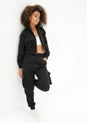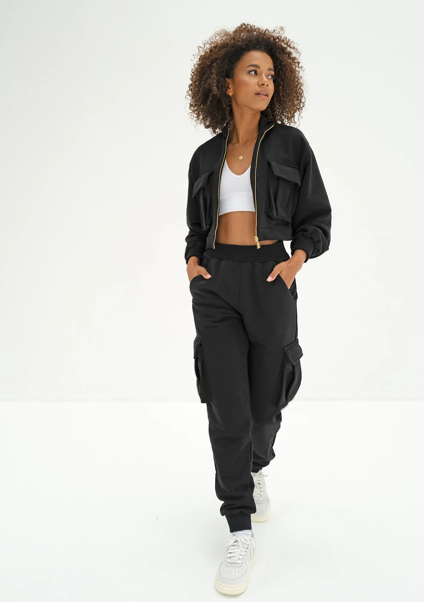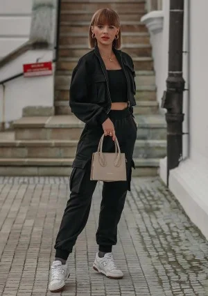 Loxy - Spodnie dresowe damskie cargo Czarne