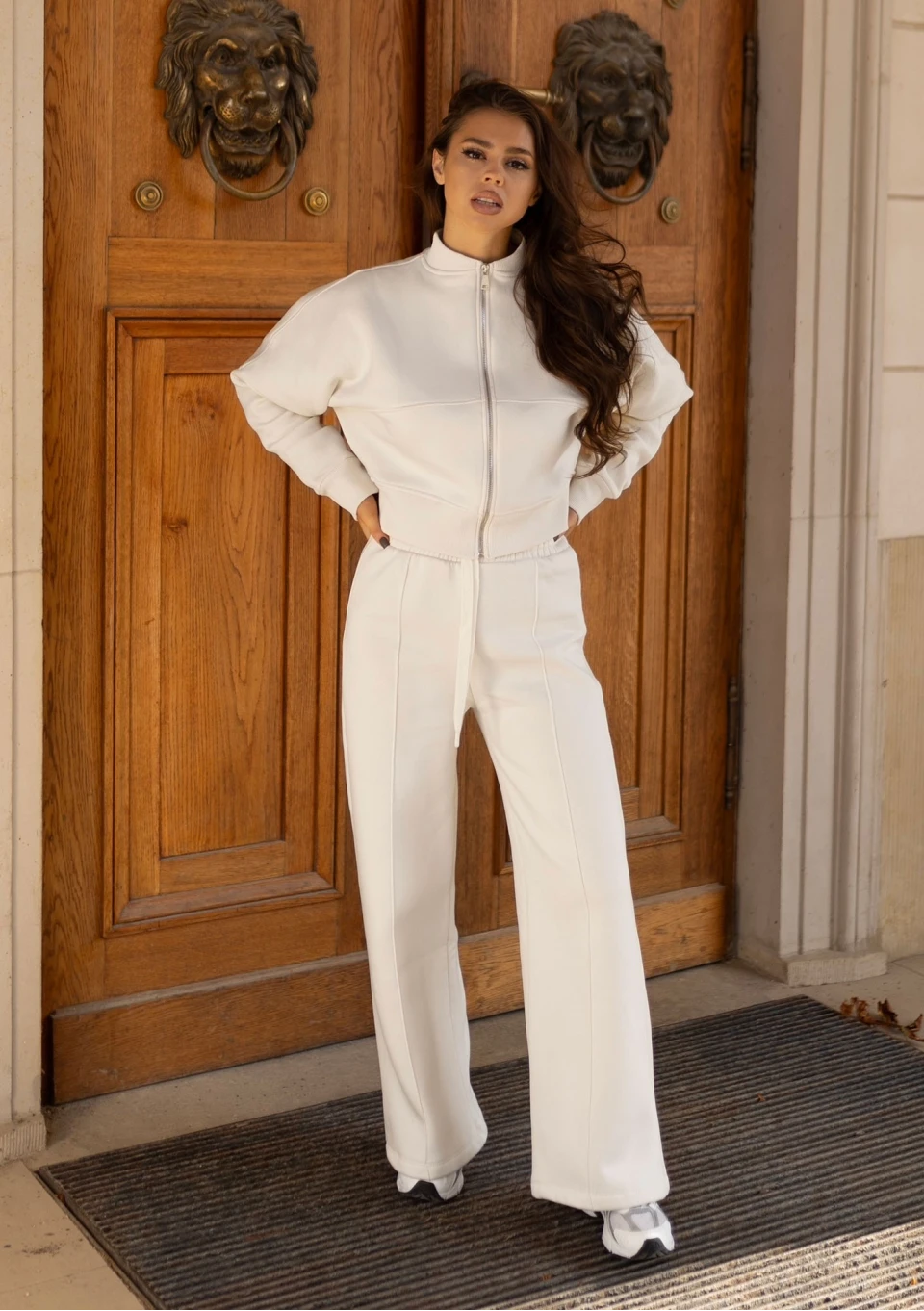Bailee - Spodnie dresowe z szeroką nogawką Creamy