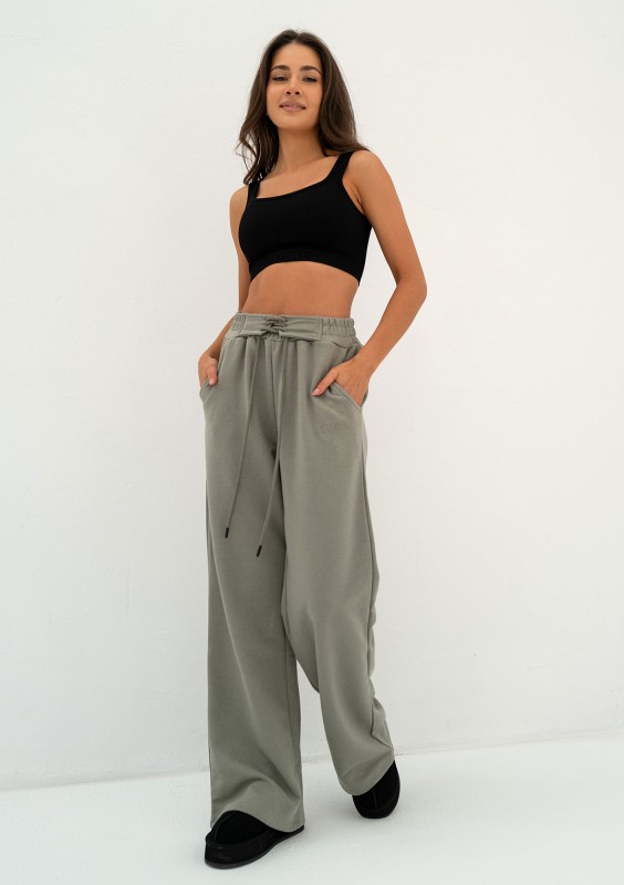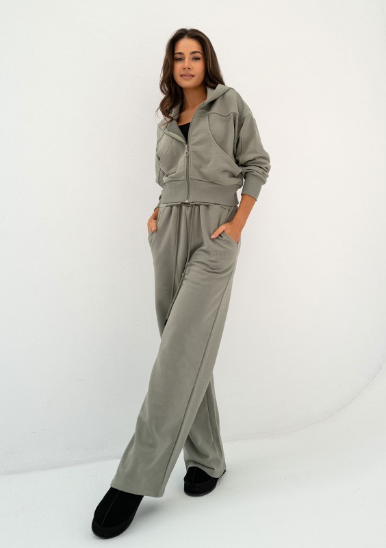 Chcesz poczuć się wyjątkowo komfortowo, nie rezygnując przy tym ze stylu? Bawełniane spodnie dresowe to idealne rozwiązanie. Miękka dzianina pętelkowa sprawia, że są jest lekkie i przyjemne w noszeniu, a pas ze sznurowaniem dodaje im unikalnego charakteru. Ten stylowy akcent będzie dobrze wyeksponowany w połączeniu z rozpinaną bluzą Saggy. Dres damski został wykonany w kolorze oliwkowym - to świetny wybór dla Ciebie, jeśli zawsze starasz się zaskoczyć czymś wyjątkowym i niepowtarzalnym w swoim ubiorze.