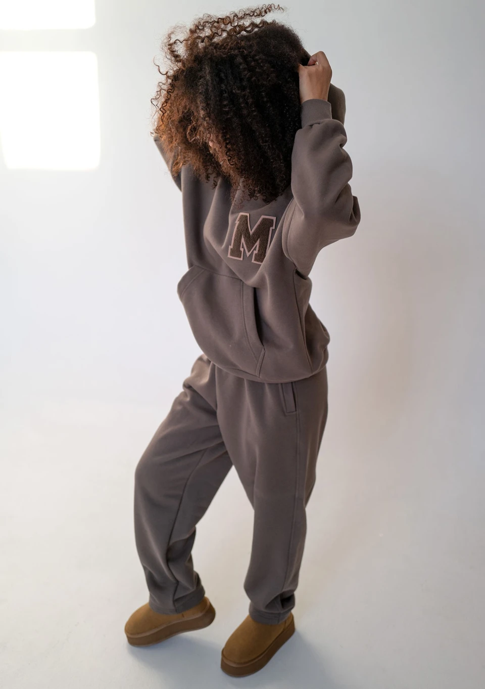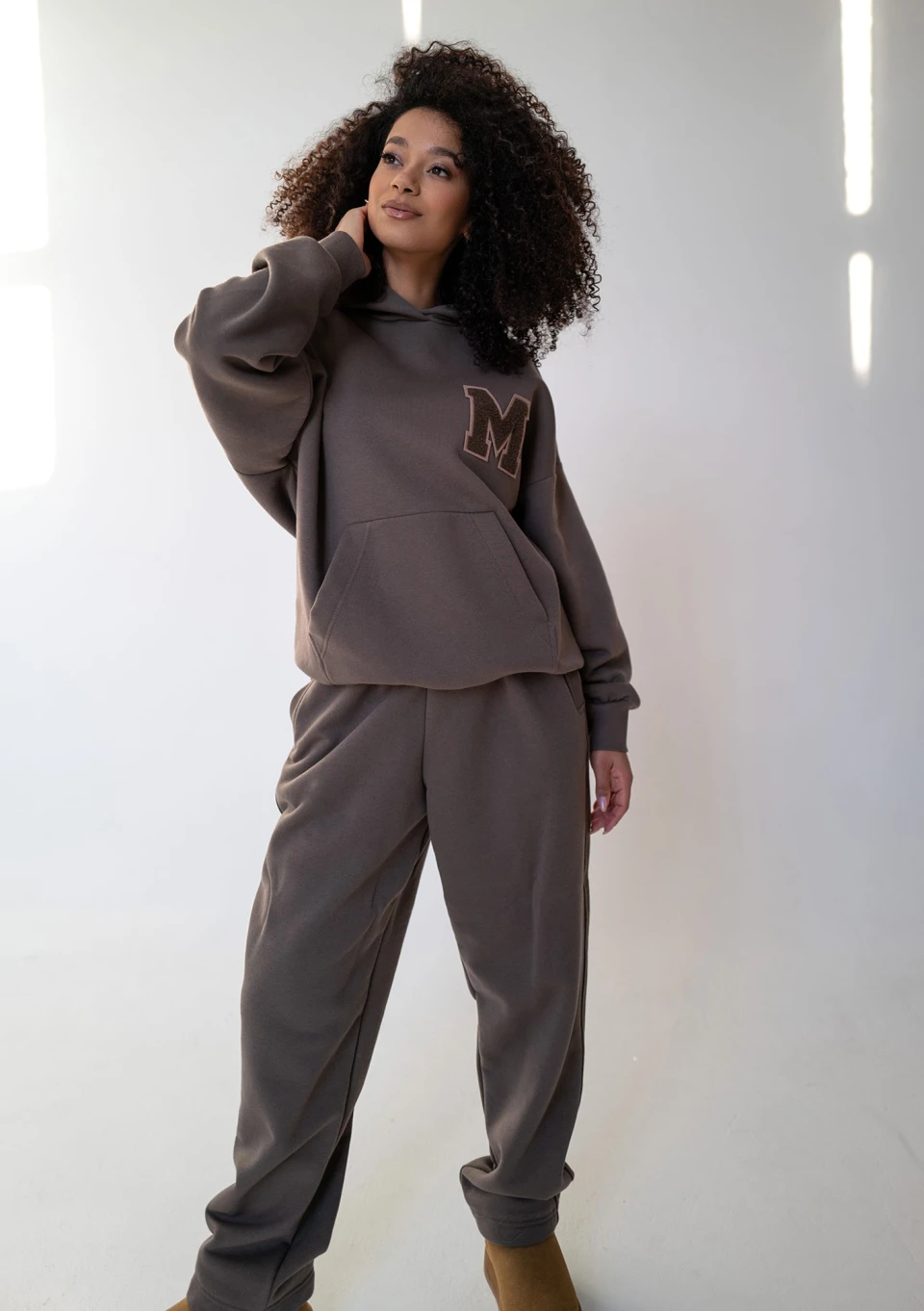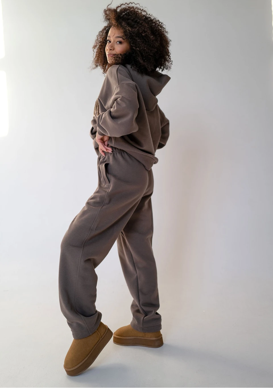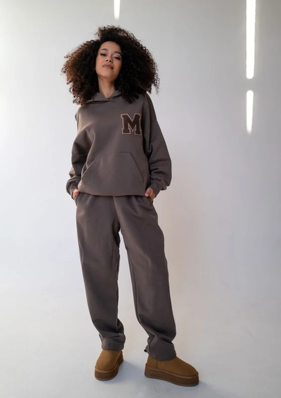 Bardzo przytulne i komfortowe spodnie dresowe z prostą nogawką. Wykonane z miękkiej, ciepłej dzianiny z meszkiem, w brązowym odcieniu ,,Savannah Tan".