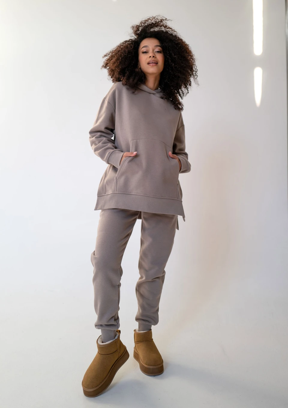 Simply - Długa bluza z kapturem Simply Taupe