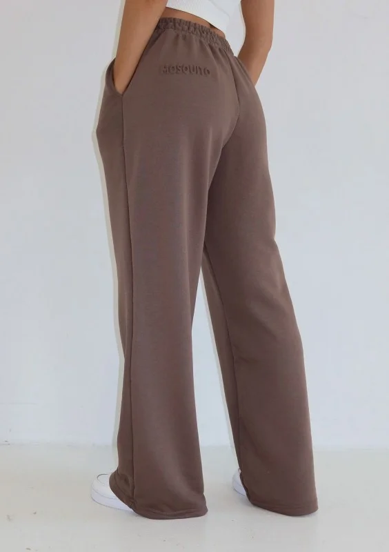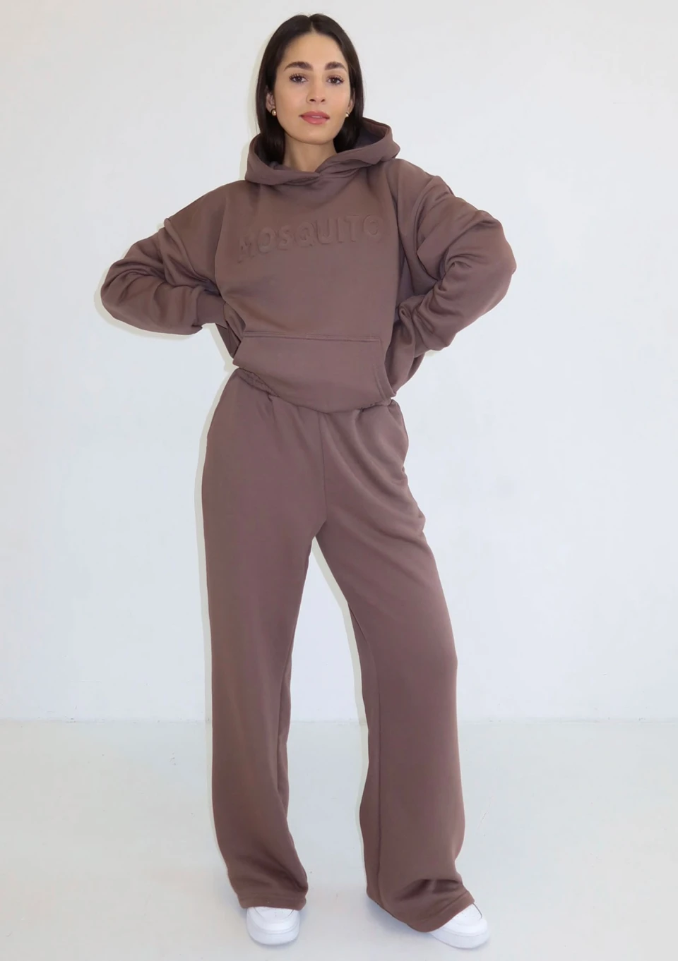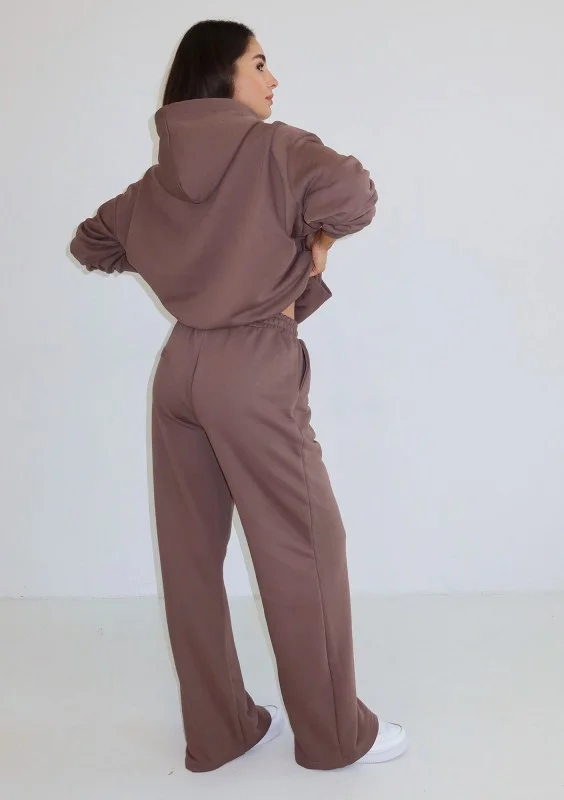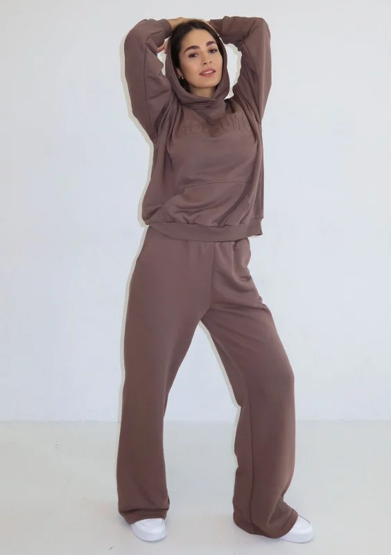 Chcesz odmienić swój look i poszukujesz wygodnego kroju? Wybierz spodnie dresowe damskie Verve z modnym, pięknie wykonanym logiem o wypukłej czcionce. Te wygodne, sportowe spodnie z szerokimi nogawkami są wykonane z solidnej dzianiny w kawowym kolorze. Poznaj wysoką jakość naszych pięknych dresów i ciesz się komfortową stylizacją na rozmaite, codzienne okazje.