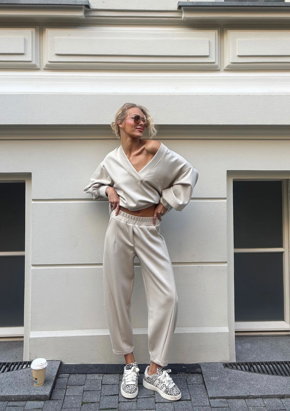 Ollie - Spodnie dresowe z dzianiny soft Latte