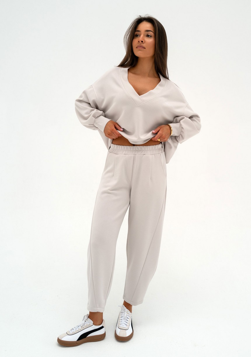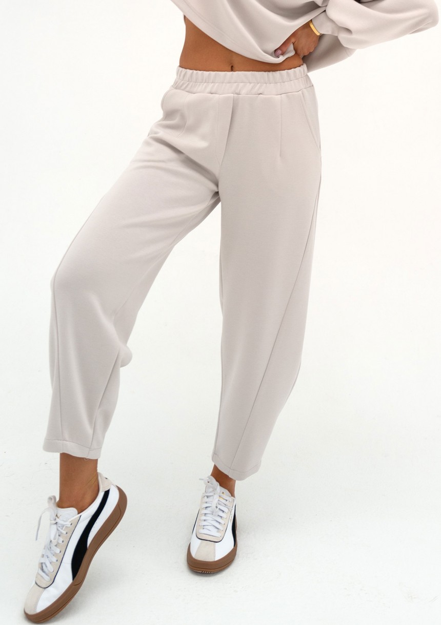 Stylowe spodnie z wyjątkowego, milutkiego materiału z wiskozą. Pięknie dopełnią bluzę Ollie, tworząc modny, bardzo elegancki komplet w kokosowym odcieniu.