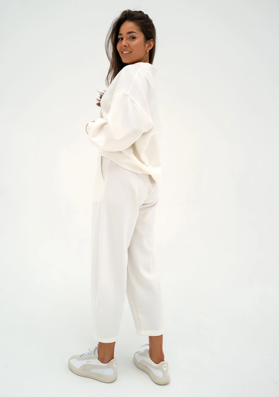 Stylowe spodnie z wyjątkowego, miękkiego jak chmurka materiału z wiskozą. Pięknie dopełnią dedykowaną bluzę, tworząc modny, bardzo elegancki komplet.