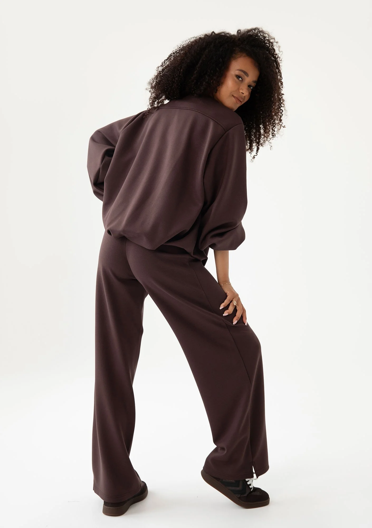 Te brązowe spodnie damskie to idealny wybór na co dzień. Ich luźniejsza nogawka zapewnia wygodę, a uniwersalny krój sprawia, że możesz je nosić ze wszystkim, co masz w szafie. Świetnie wyglądają z T-shirtem i bluzą, ale równie dobrze sprawdzą się w bardziej eleganckim zestawieniu, na przykład z koszulą i marynarką. Są wykonane z miękkiej, wiskozowej dzianiny, która doskonale się układa. Proste, stylowe i wygodne – gotowe na każdą okazję.