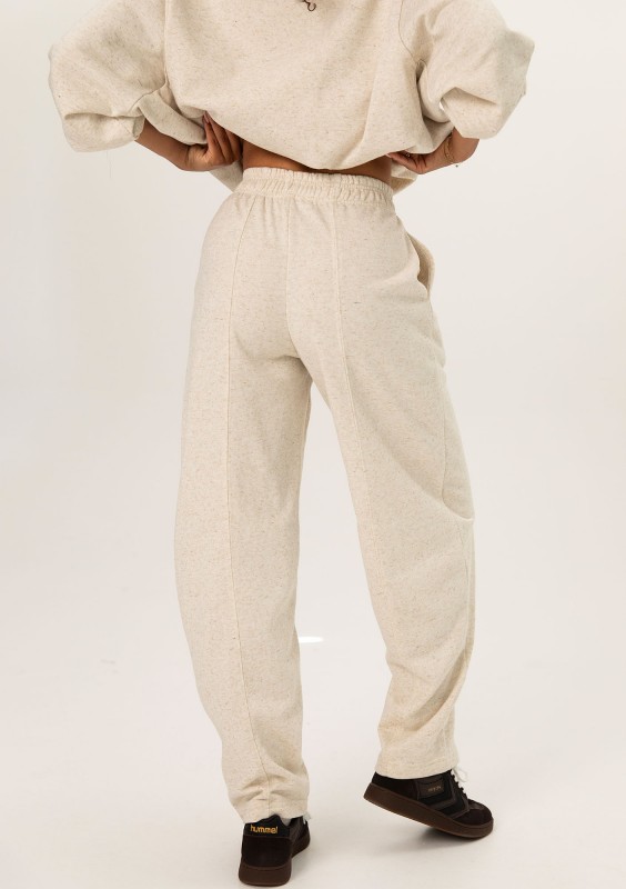 Spodnie dresowe dedykowane bluzie Puff, wykonane w melanżowym, beżowym kolorze. Fason z luźną nogawką i przeszyciami.