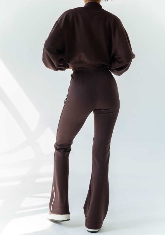 Relay - Spodnie z rozszerzaną nogawką i lampasem Brązowe