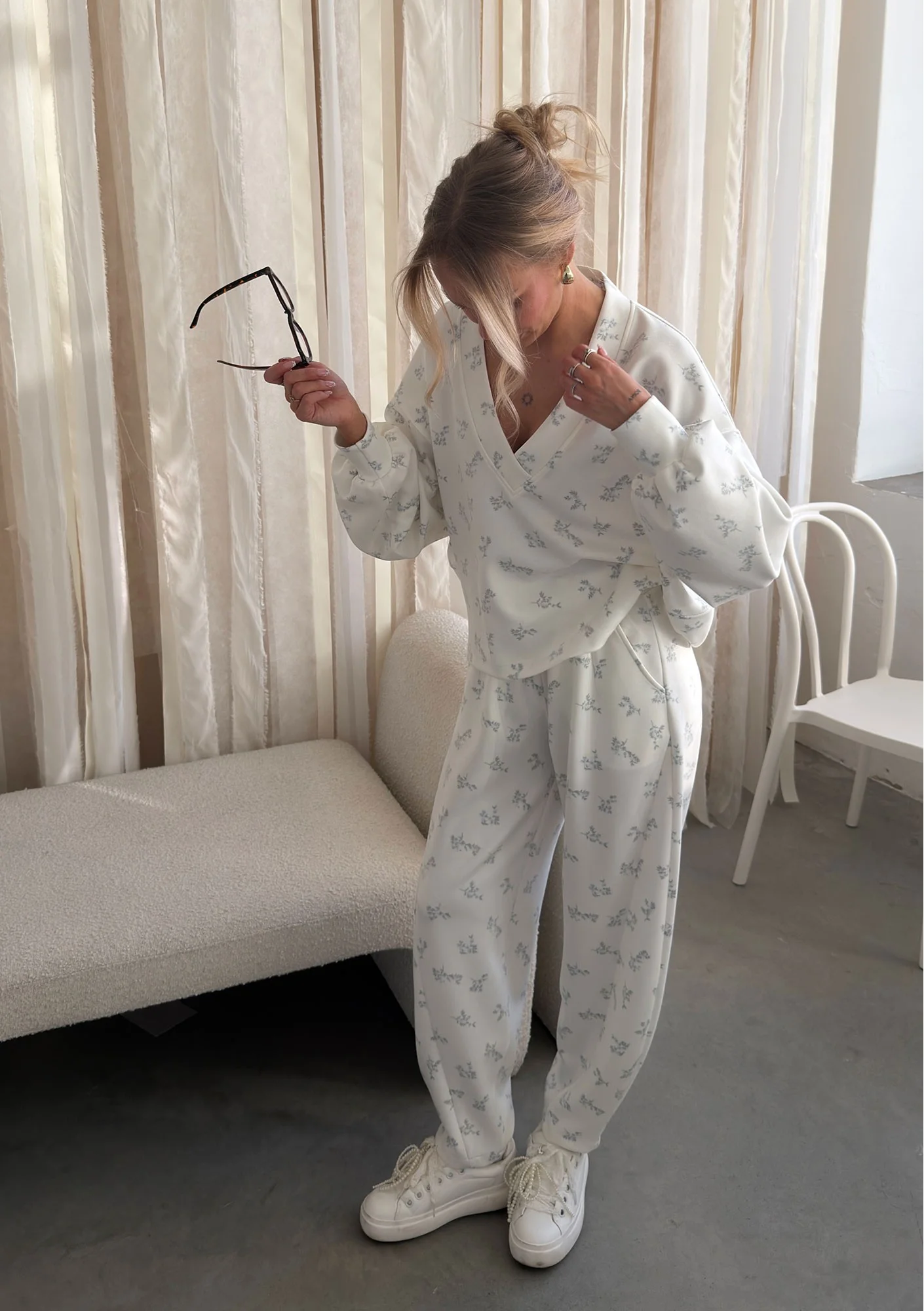 Ollie - Spodnie dresowe z dzianiny soft Blue Flowers