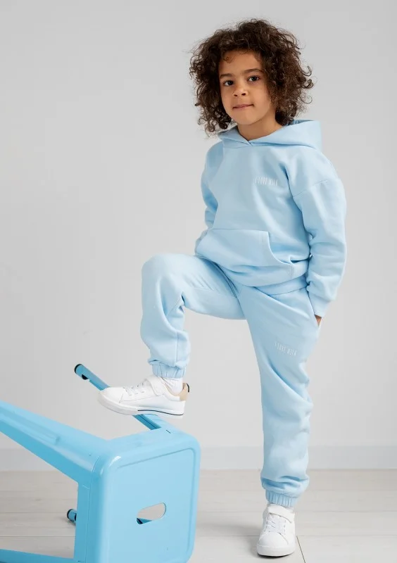 Błękitne spodnie dresowe dziecięce to sportowy fason na wiele okazji w chłodne dni wiosny i jesieni. Świetnie zaprezentują się z bluzą w komplecie.