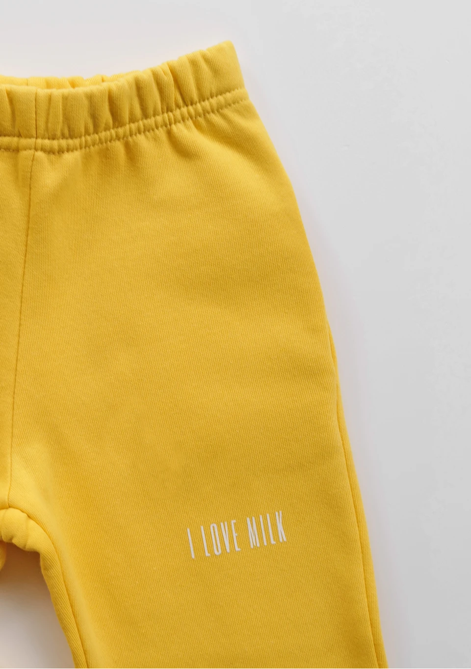 Żółte spodnie dziecięce o wygodnym, sportowym kroju. Uszyte w polskiej szwalni z miękkiej dzianiny bawełnianej.