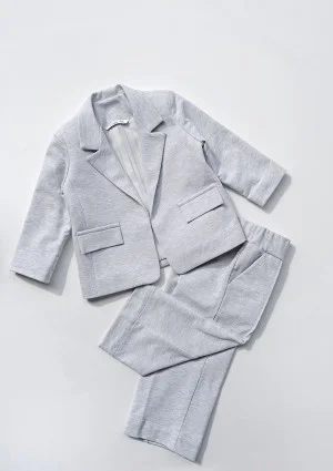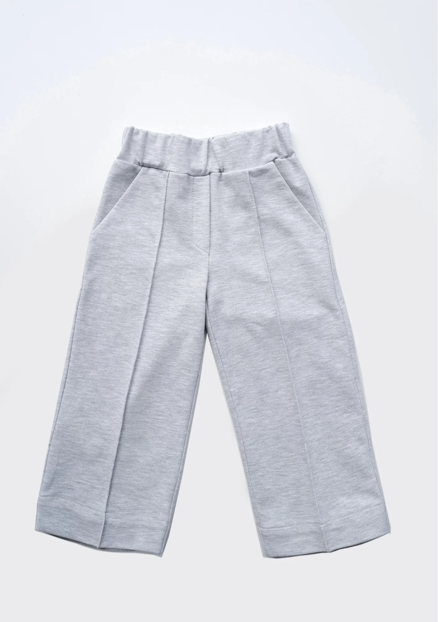 Bawełniane spodnie dziecięce w melanżowej szarości zadowolą każdego eleganta. Zostały wykonane w pełni z naturalnej i bezpiecznej dla zdrowia tkaniny. Krój posiada wygodną, mocno elastyczną gumę w pasie oraz dwie kieszonki.
