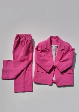 Ubranko możesz połączyć w spójny komplet z marynarką, również dostępną w sprzedaży. Taki komplet idealnie sprawdzi się w okresie wiosennym, jako ubiór do szkoły, na drobne uroczystości i wizyty. Identyczną stylizację przygotowaliśmy również w wersji damskiej, dla mam. Prezentowane spodnie dziecięce z bawełny to ubranko rodzimej produkcji, zaprojektowane przez Alicję Komar i uszyte w naszej pracowni w Tomaszowie Mazowieckim. W produkcji korzystamy wyłącznie ze sprawdzonych i certyfikowanych materiałów, odpowiednich dla dzieci już od pierwszego miesiąca.