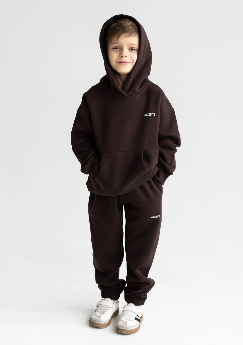 Brązowe spodnie dresowe dziecięce z naszej serii Pure to ubranko o codziennym, szerokim przeznaczeniu. Dopełnij je dedykowaną bluzą kangurką.