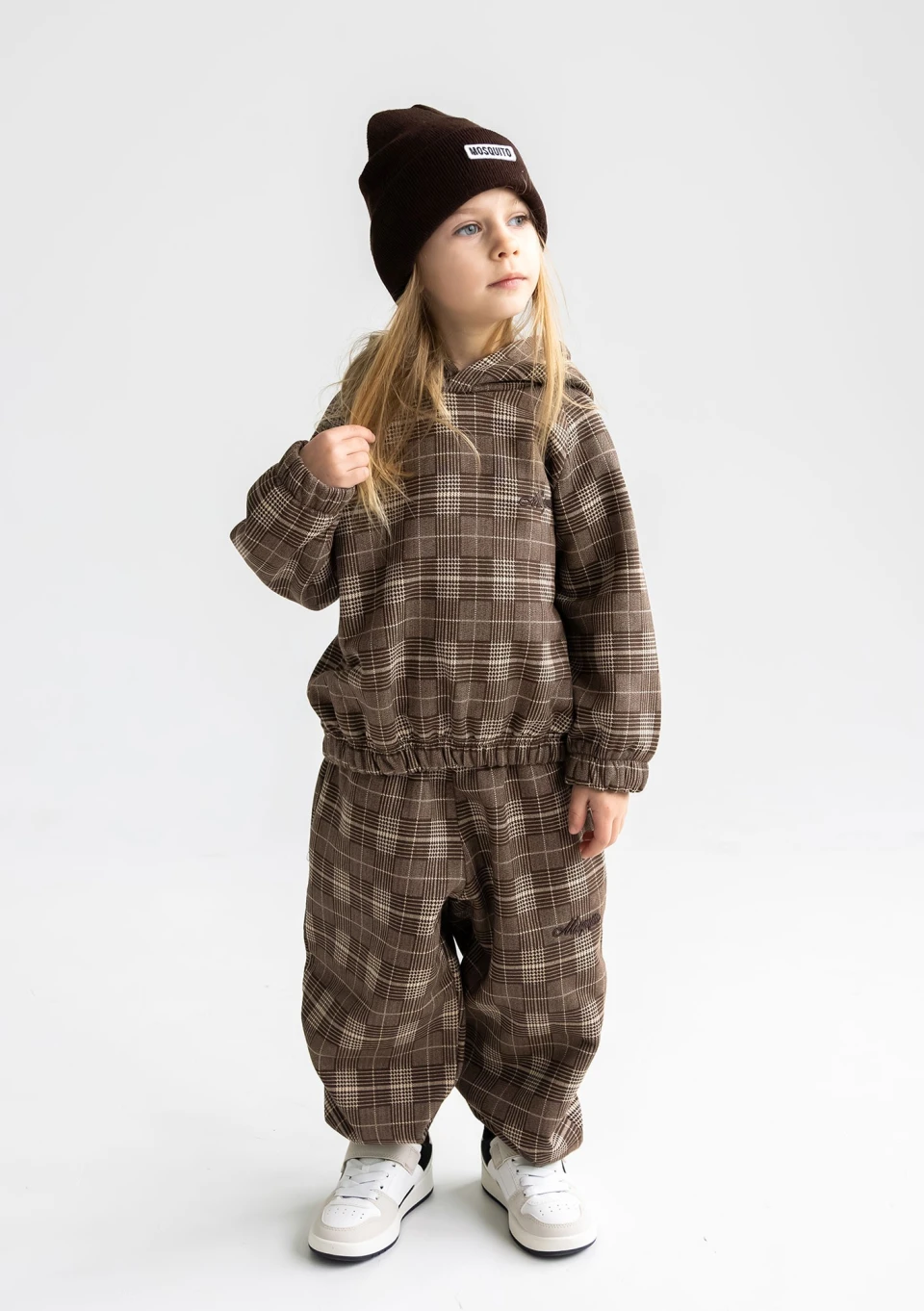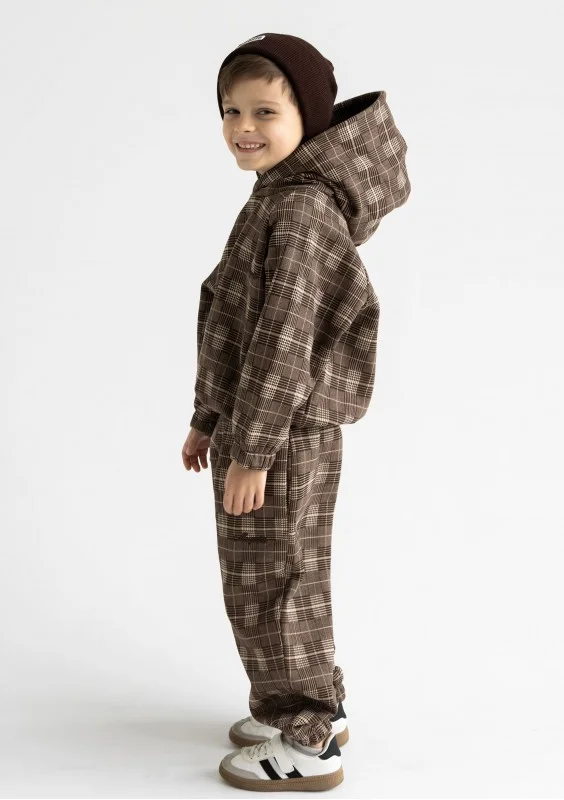 Loom - Bluza dziecięca z kapturem w kratę Brown
