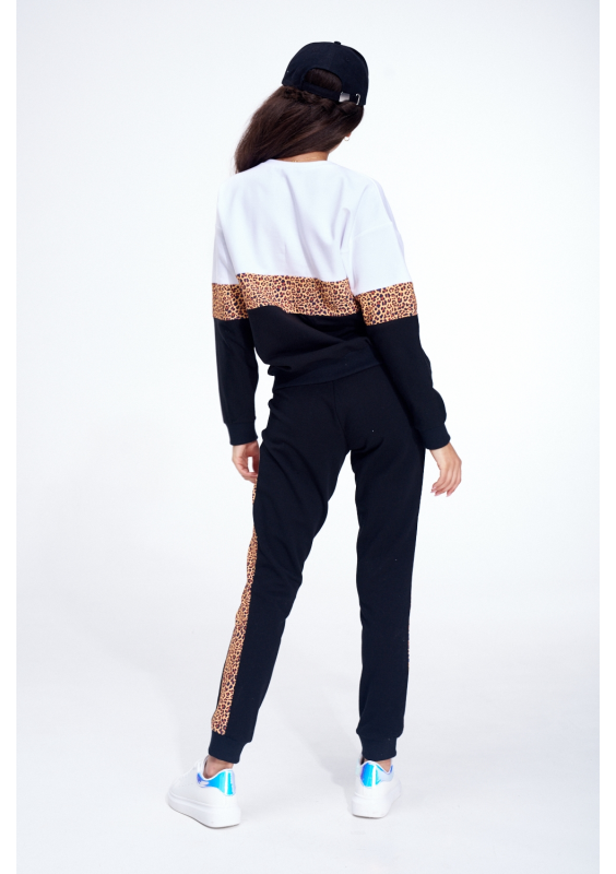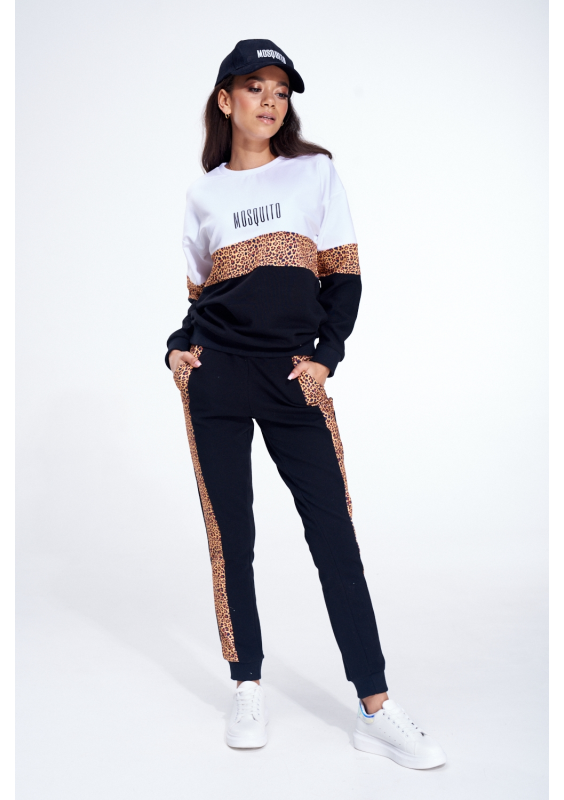 Wygodne i lekkie spodnie dresowe z drapieżnym akcentem panterki w formie bocznych lampasów. Wykonane z przewiewnej, lekko elastycznej dzianiny bawełnianej. Posiadają dwie kieszenie.