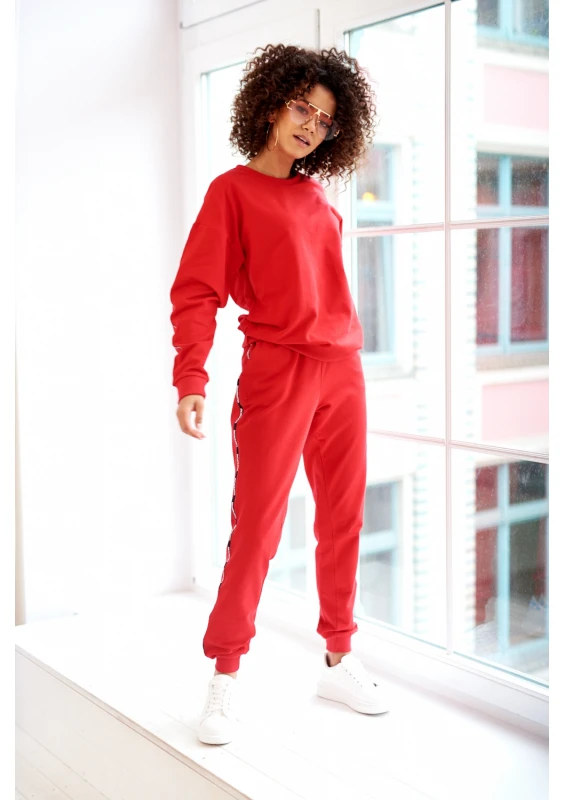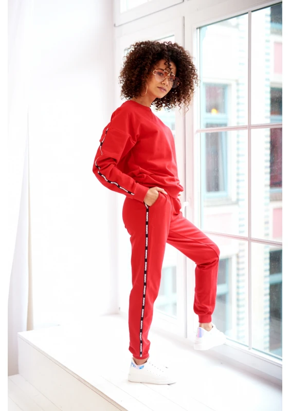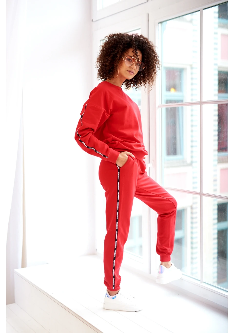 DRES Z LAMPASAMI LOGO BRAND ILM CZERWONY