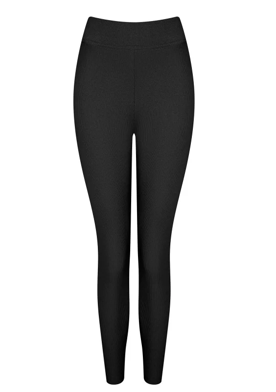 Czarne legginsy damskie bawełniane z prążkowanej dzianiny. Idealne do topu i modnych bluz oversize.