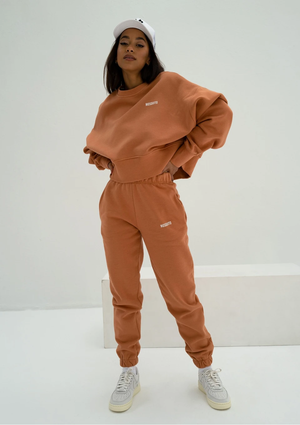 Spodnie dresowe damskie w dyniowym odcieniu Dusty Orange wykonaliśmy z dzianiny z przyjemnym meszkiem po wewnętrznej stronie i wykończeniem zapewniającym dodatkową miękkość. Ten wyjątkowy kolor będzie świetnie prezentował się w zestawie. Stwórz stylowy dres damski dodając do zakupu bluzę Shore lub model z kapturem Pure.