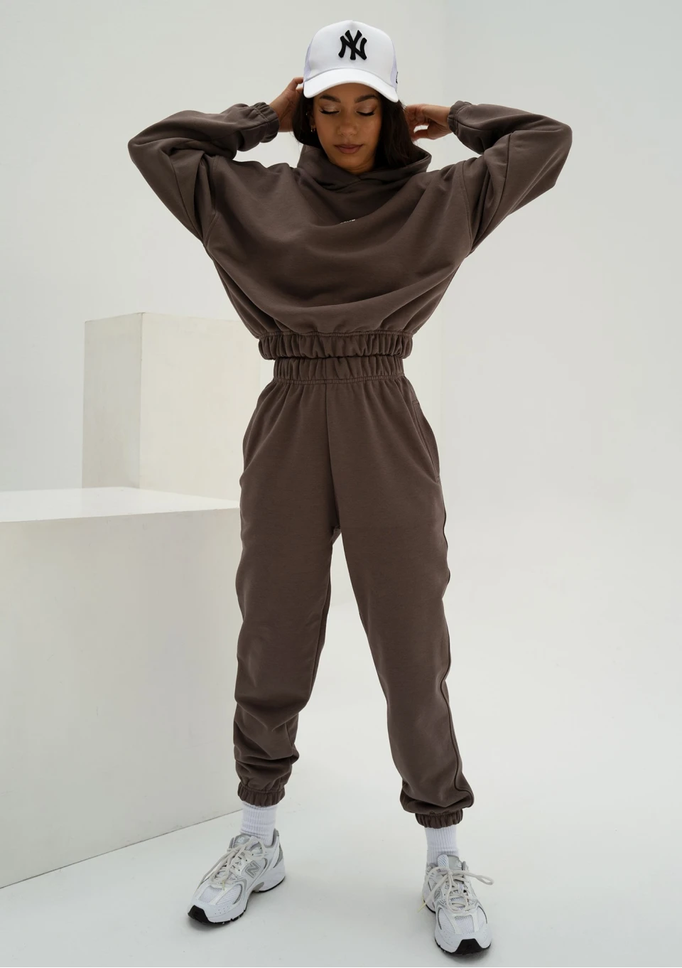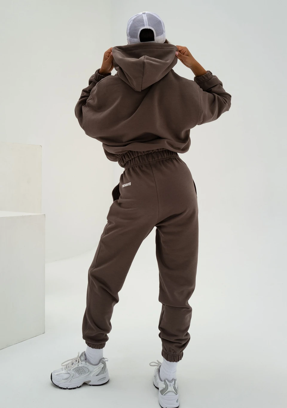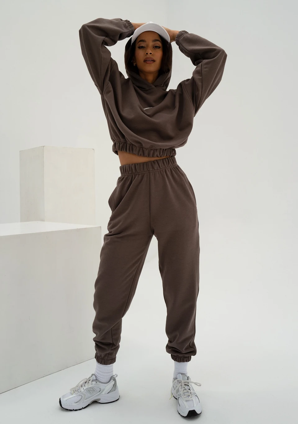 Odkryj stylowy dres damski polskiej marki Mosquito. Spodnie z logiem z tyłu zostały uszyte z miękkiej dzianiny w pięknym brązie.