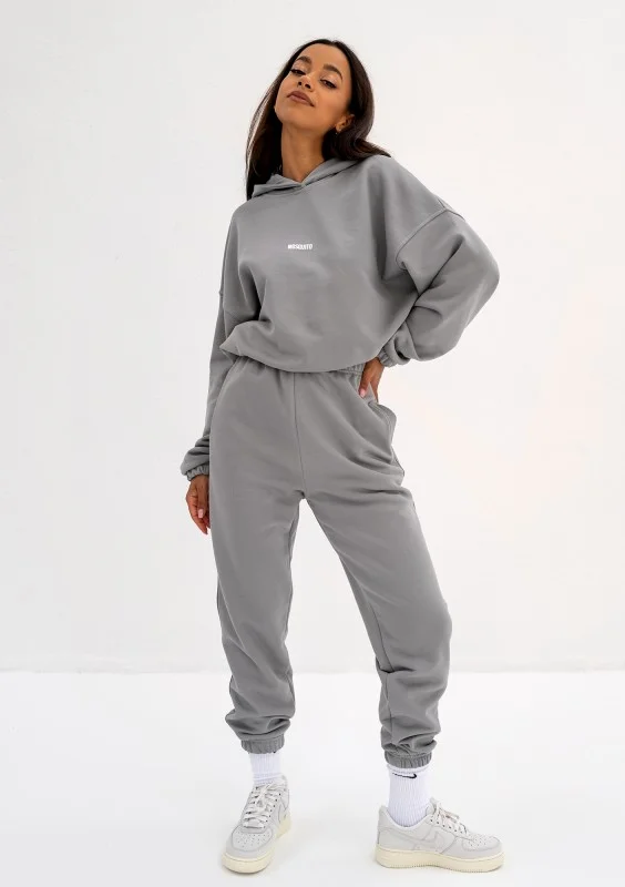 Spodnie dresowe damskie z miękkiej dzianiny bawełnianej w szarym odcieniu Gray Rock. Dopełnione z tyłu drobnym logiem.