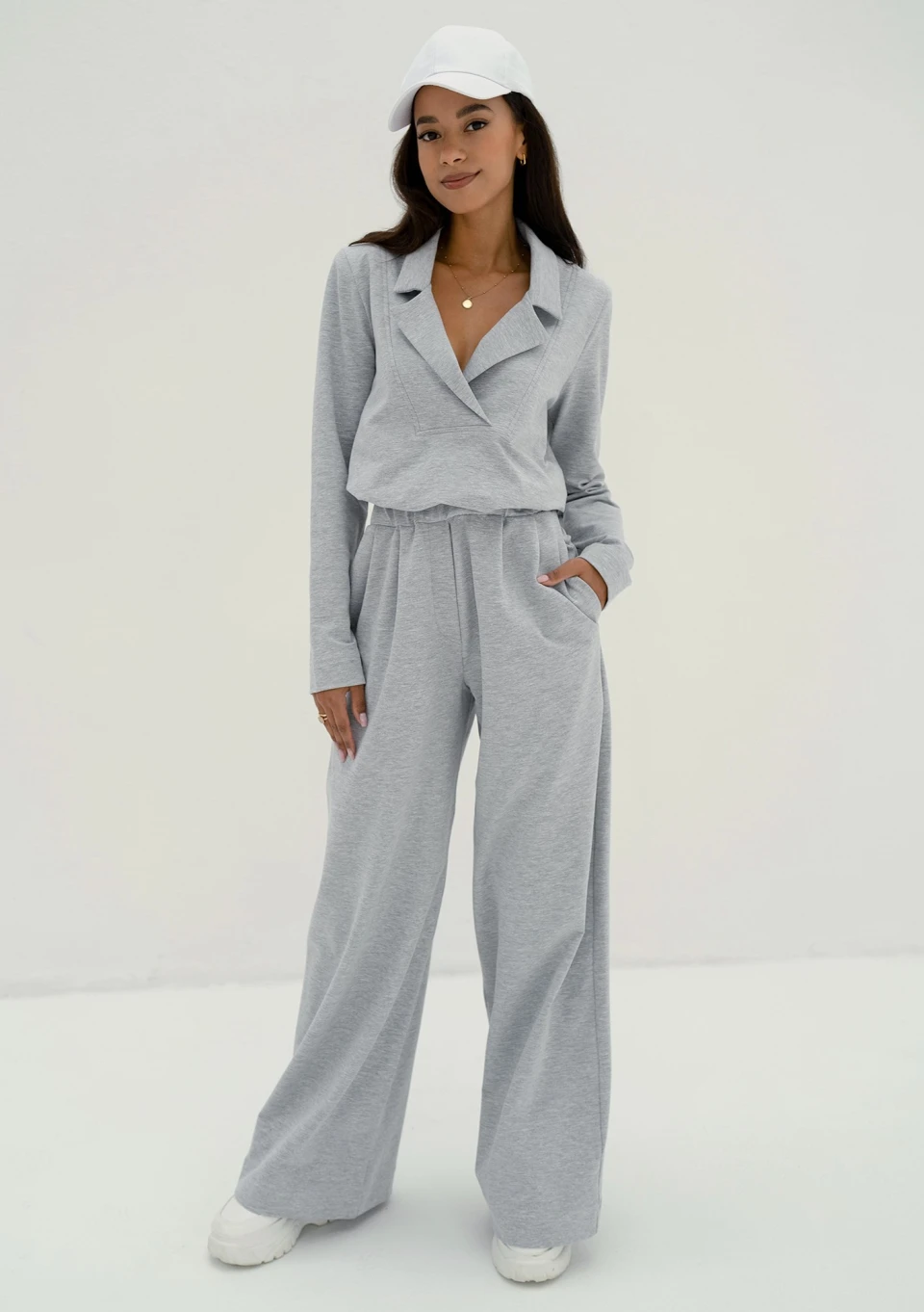 Onix - Spodnie z szeroką nogawką Grey Melange